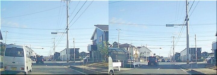 十字路に入る際に、この黒っぽい車はスピードは出しておられませんけど、左右の確認を怠り直進です。と、同時に左から白い車が直進で進入。白い車もまた左右の確認が不充分でしたのでしょうねぇ~