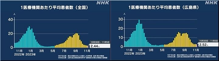 ・10月2日~8日 535人 定点あたり4.73人 前週比 減少