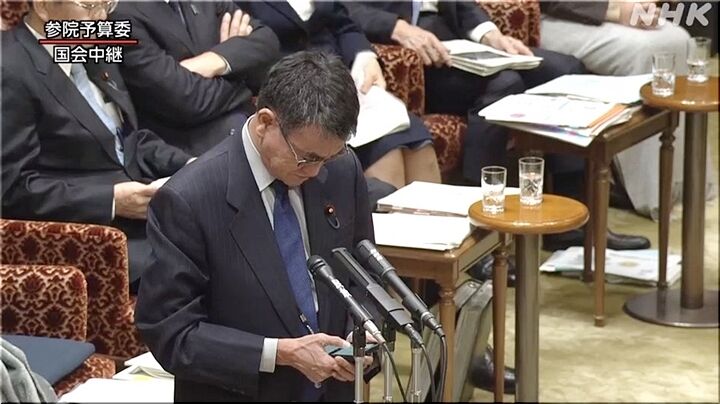 ◆河野太郎氏、スマホで答弁内容を調べようとしてやんわり注意される 答弁席で異例の光景