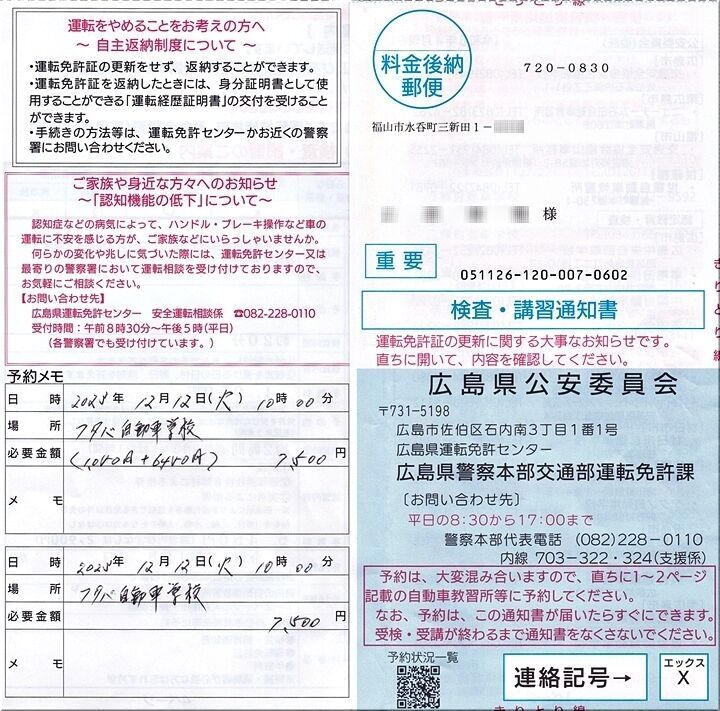 本日(12/12)は、来春の車の免許更新に伴い〝認定認知機能検査〟を受けます為、フタバ自動車学校行きのGONsanでした(^.-)☆