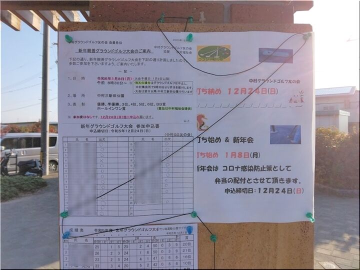 帰宅し、掲示板を撮りました画像を確認してみますと、やはり「打ち納め 12月24日(日)」でありました。ですが、GGは週に3日参加のGONsanですから、変更されましたことに気付きませんでしたのかも…