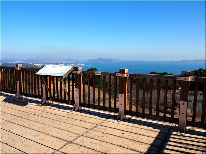 展望台にと上がりますと、さすがにここからですと、青々とした瀬戸内が広がります。イィ景観ではあります。