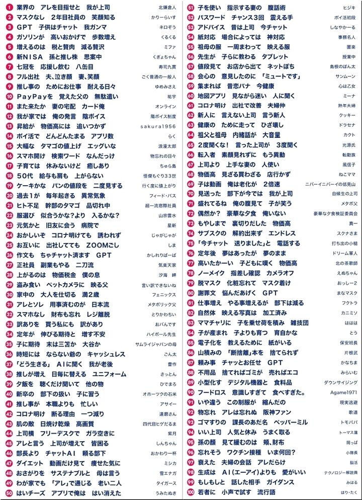 ◆2023年サラリーマン川柳優秀100句決定、一挙紹介--今年はアレやChatGPTが入選