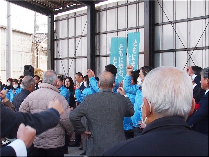 熊谷議長のご挨拶が終わりますと、最後にガンバローコールで締めくくり。無事、〝建内ひろゆき後援会事務所開き〟は閉会となりました(^.-)☆