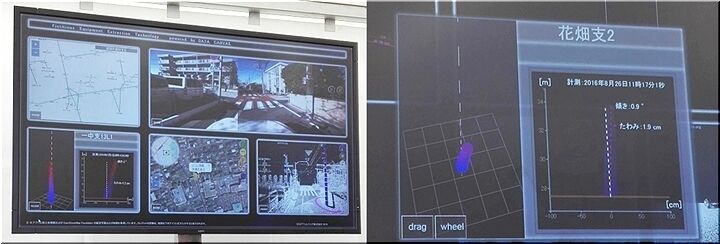 なお、目視では認識できない数センチ程度の傾き・たわみでもMMSなら走行しながら自動的に検知が可能だ。MSS自体は市販されているもので前述のように複数の業界で利用されているが、説明員によれば、そこに測定方法やノイズ除去のアルゴリズム等の「NTTのノウハウを組み合わせる」ことで上述の仕組みを実現している。その技術は「現時点で世界一」のレベルにあるという。