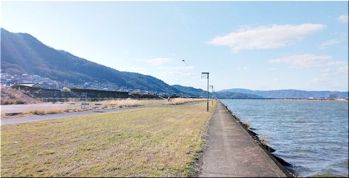対岸の芦田川左岸の河川敷では、ウォーキングしておられます方々は結構おられますけど、右岸では、ご覧の通り閑散と(^-^)