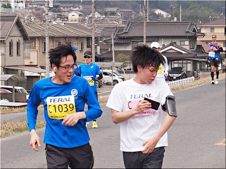 こぅして、次から次にGONsanの前を通過して行かれます選手の皆様を画像に納めておりましたら、スマホを片手に走っておられます方が…