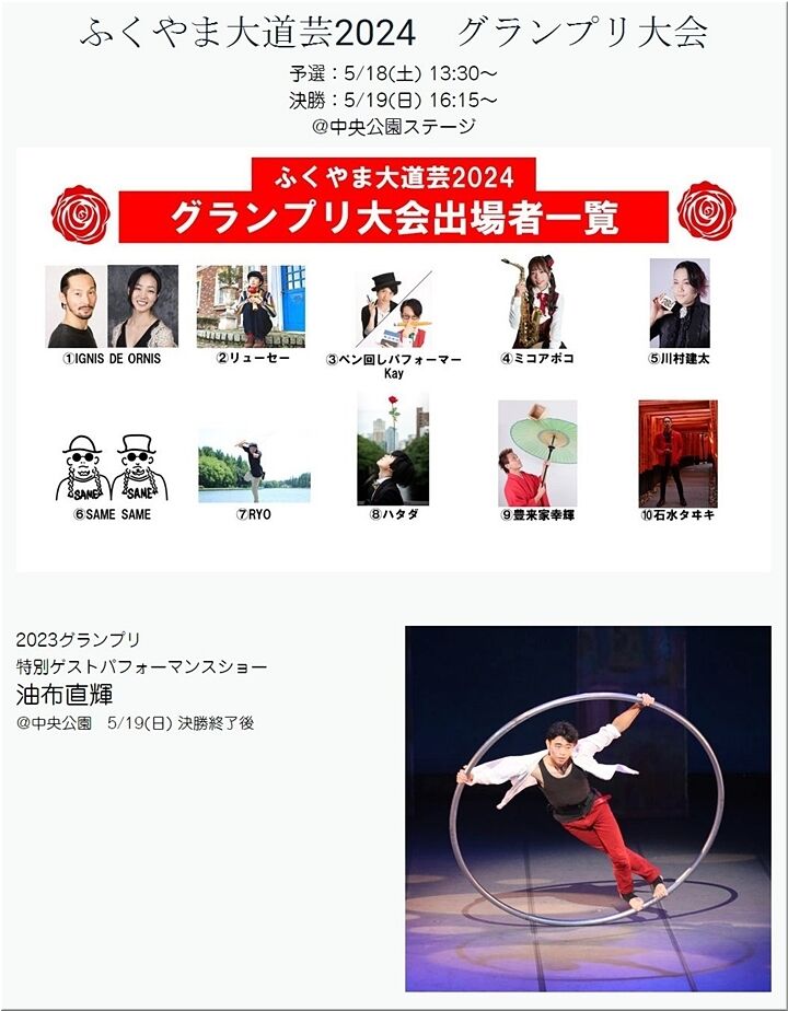 先月、リニューアルオープンを迎えました〝福山ばら公園〟に出掛けますのも楽しみですけど、〝ふくやま大道芸2024〟もまた楽しみであります。