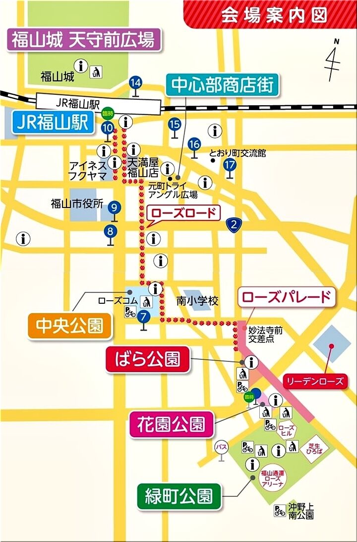 例年5月中旬には福山市最大のイベント「福山ばら祭」が、ばら公園をメイン会場のひとつとして、盛大に開催されます。