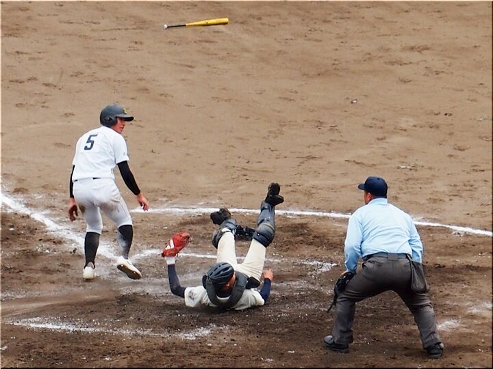 期待に応えました打者のセンターに抜けました打球で、果敢にホームへ走り込みました2塁走者でしたが、返球が仲々の好球でした。際どいタイミングでしたけど、返球が良すぎました。残念ながらアウト(^-^;