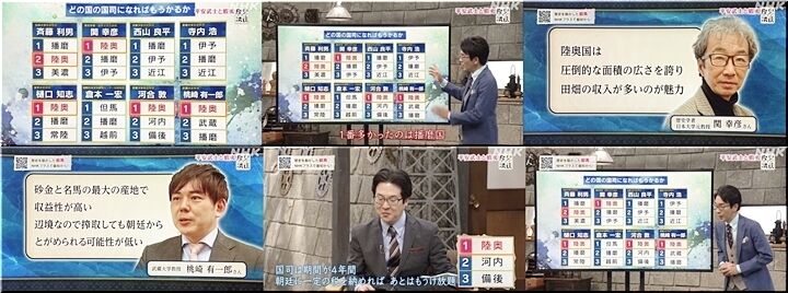 それで、〝どの国の国司になったら儲かるか…〟と言う話題では、8名の学者が上位3国を挙げておられました。
