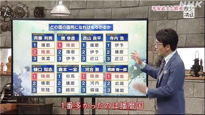 一番多かったのは〝播磨国〟で、一位が多かったのは〝陸奥国〟でありました。