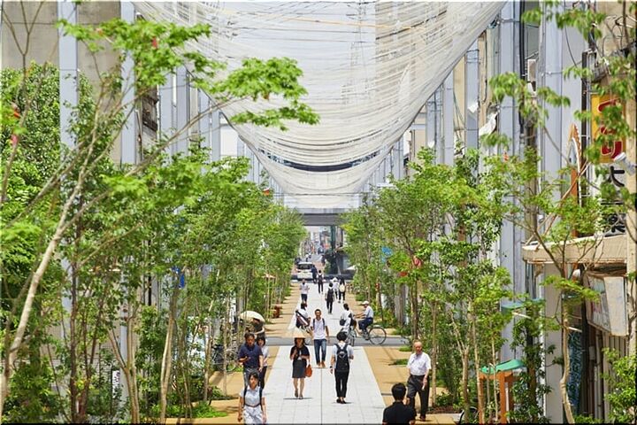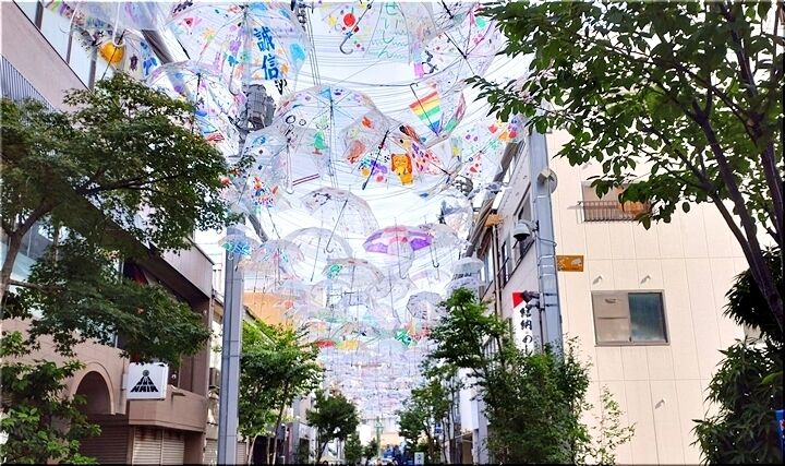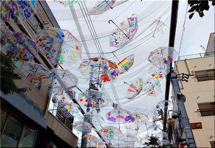 これは、〝とおり町交流館〟前の〝とおり町StreetGarden〟の景観ですけど、上空を見上げますと多数の傘で大変キレイです\(^o^)/
