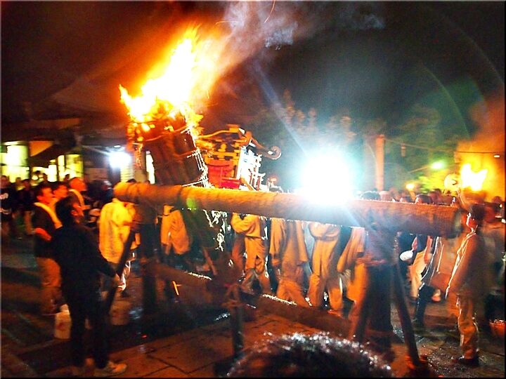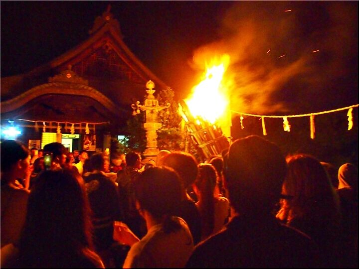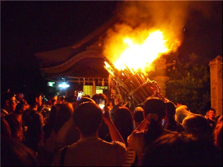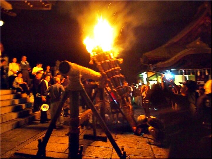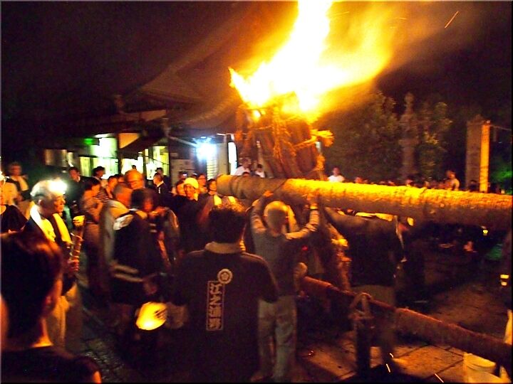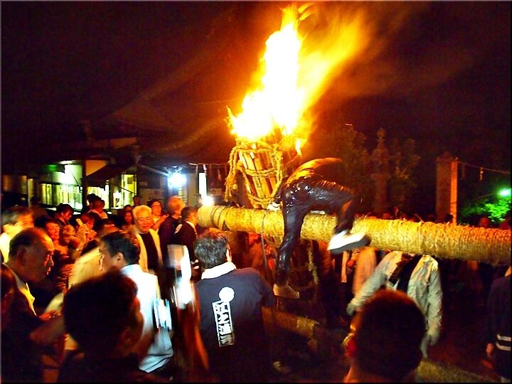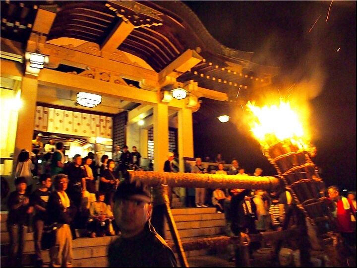 1体目に続いて約15分ばかり要し2体目の大松明が石段を上りきって来ました。