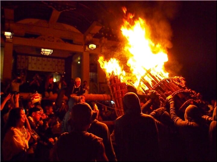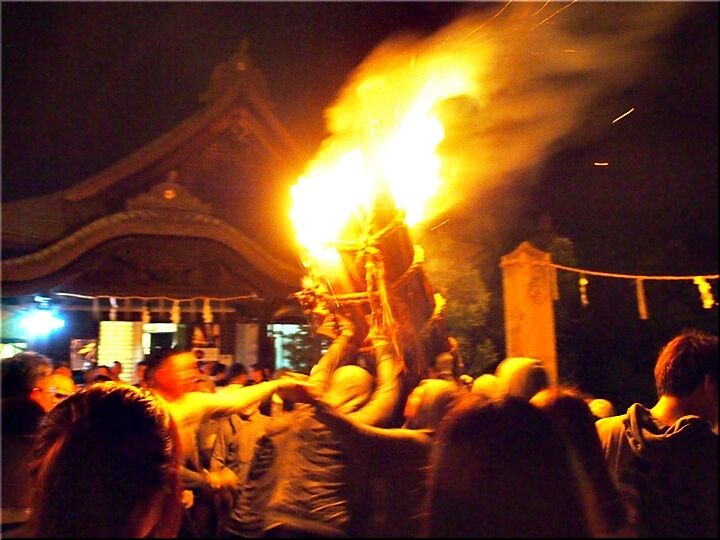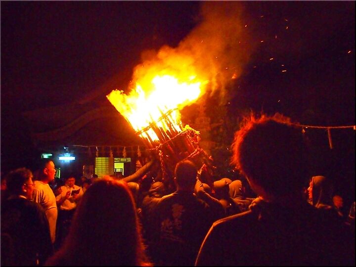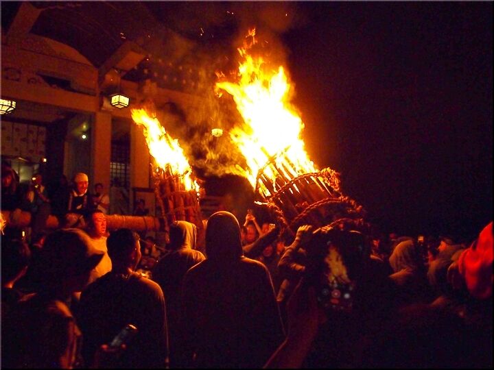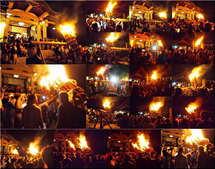 大松明が社殿に近付くに連れてカメラを向けます方の多いこと。昔カメラで、今スマホ…と言ったところでしょうか(^-^)/"
