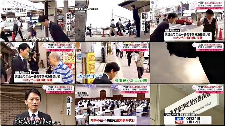 30日朝、地元の街頭、JR須磨駅前に立った斎藤前知事。県議会で全会一致の不信任決議を受けて、30日午前0時に失職しました。