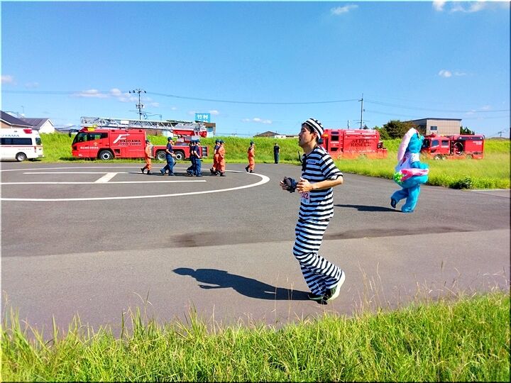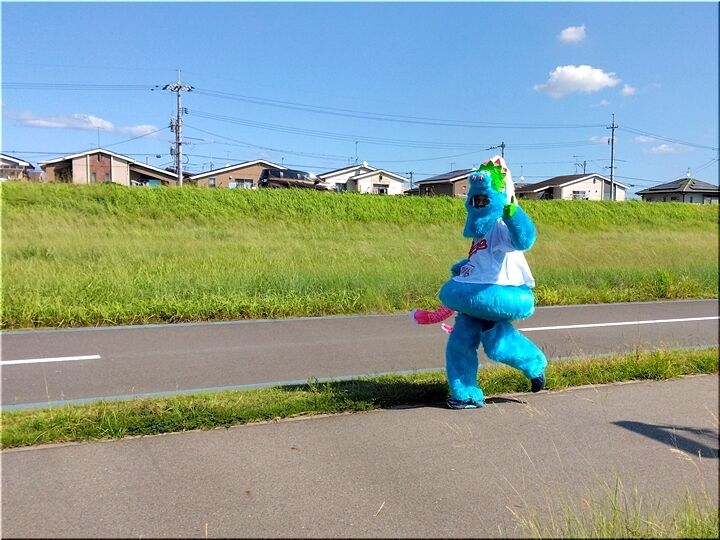 何の大会か分かりませんけど、ランナーの皆様を横目にヘリポート近くまでヤッて来ますと、カープのスライリー君のコスプレを身にまとったランナーが通過です(^.-)☆