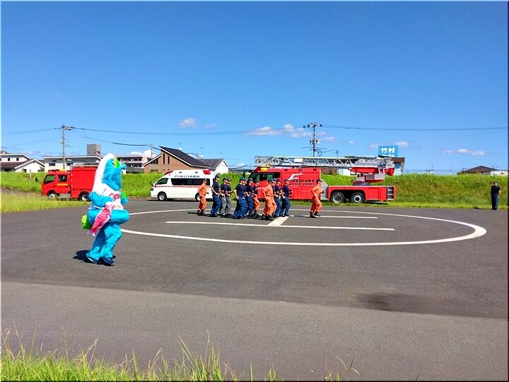 ヘリポートでは、福山消防局の皆様が訓練中でしたので、ウォーキングは中断で、一服しながら暫し拝見です。
