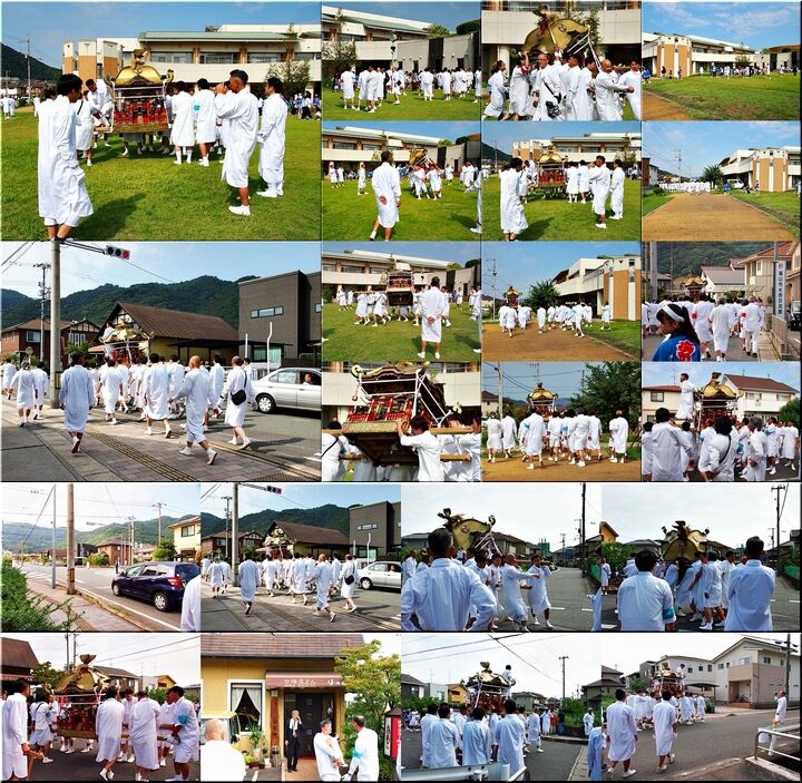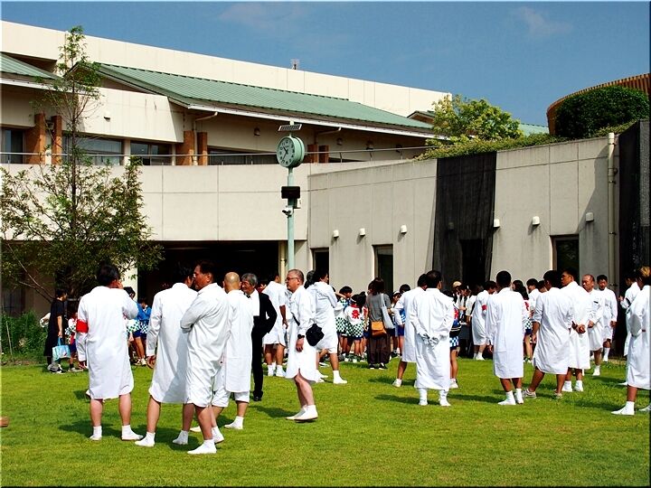 駐車場も満車状態でしたから、お祝い・お菓子・飲み物を戴き、すぐ脇の四つ角での御神輿廻しとなりました(^.-)☆