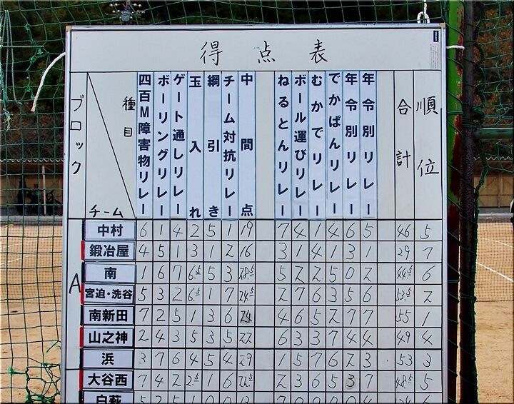 《Aブロック成績》①南①宮迫・洗谷③山の神④浜⑤鍛冶屋⑥中村⑦南新田…でありました。