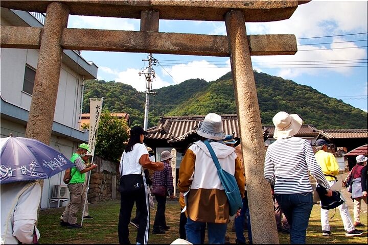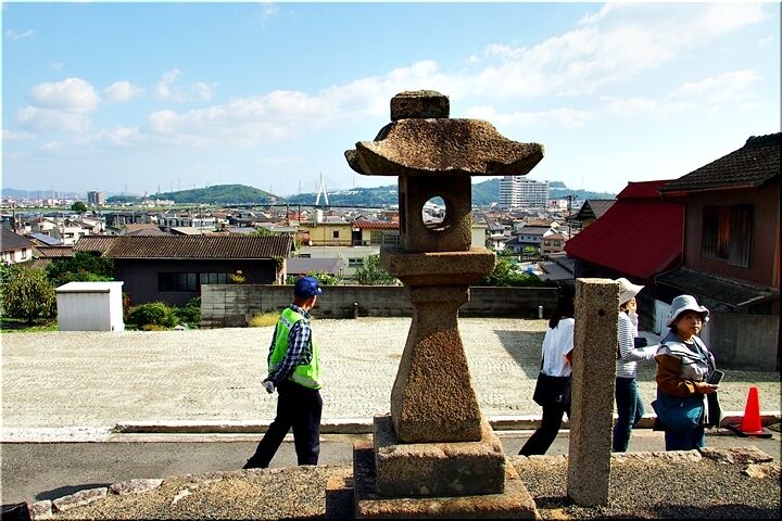 妙見神社の常夜燈からは、いつものように芦田川大橋主塔をパチリです。妙見神社を後にしますと、〝志茂占部〟の〝石垣に文字を現した石組〟へと向かいます(^-^)//"