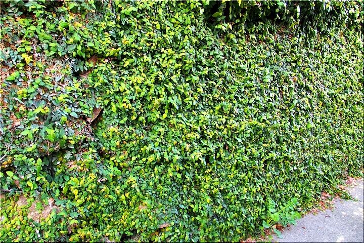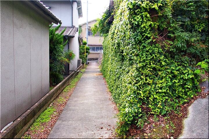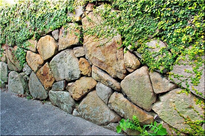 石垣には〝ツタ〟ではないのでしょうけど、類似の植物が張って覆われた箇所もありますので、〝家〟の部分は覆われて隠れていて見えませんのかも…