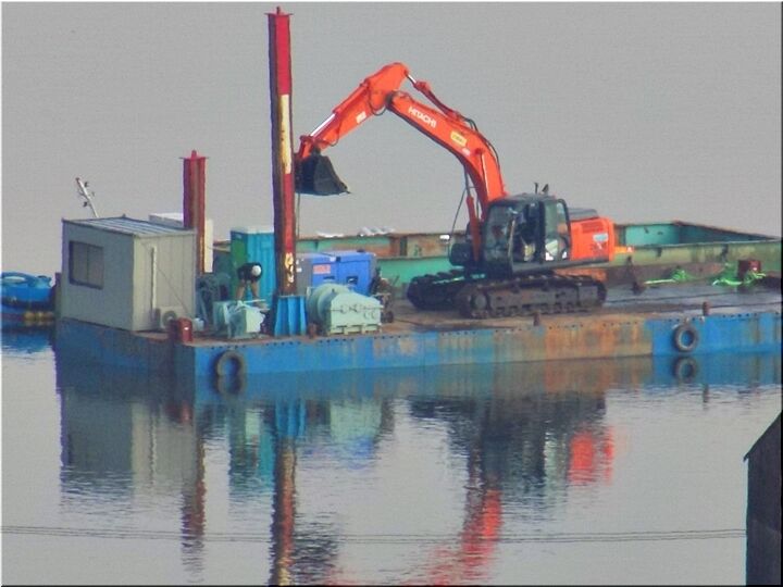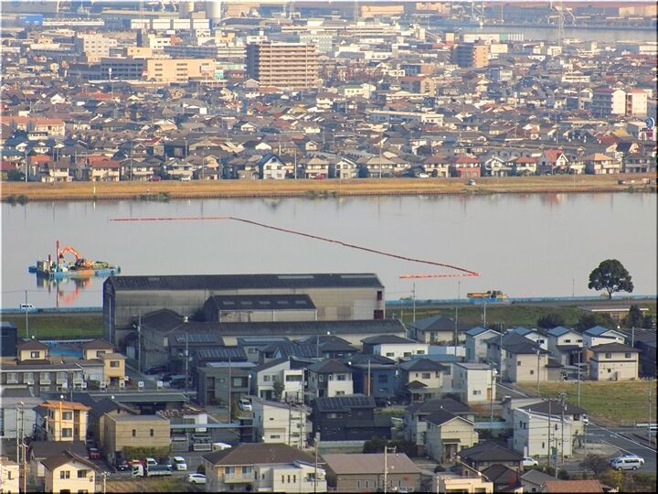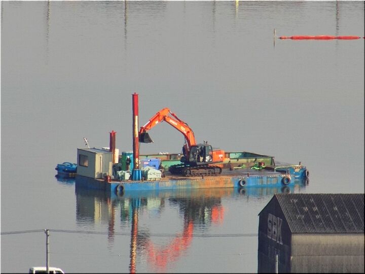 ご先祖様に手を合わせ、後は、ユックリと我が町を眺望です。芦田川大橋から少し上流では、また、川底の土砂を掘る浚渫(しゅんせつ)工事が行われておりました。