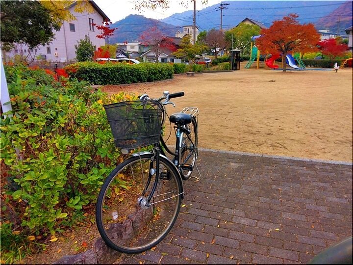 面白いのは、この自転車のカギがサドルの上に置いてありますところかも(^-^)