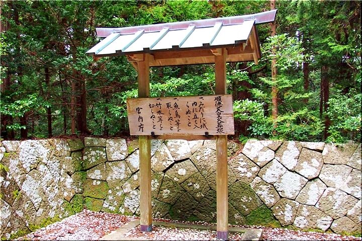 この石碑前を左折しますと〝真野御陵(順徳天皇御火葬塚)〟に到着ですけど、この二つの石碑は何なんでしょうネ…