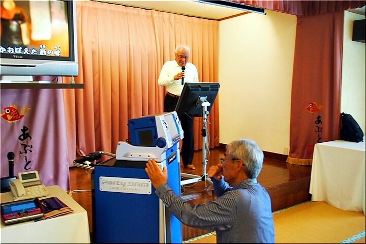 ここからは、ひたすら飲食に集中する方、マイク片手に賑やかに過ごされる方、唄いたくないのに唄わなければならない方、聴きたくないのに聴かなければならない方…と、実に様々で1時間半余りの時間が経過です(^-^)
