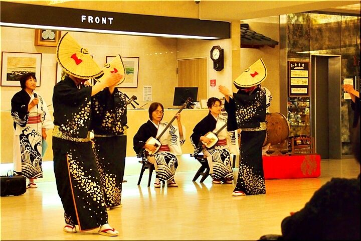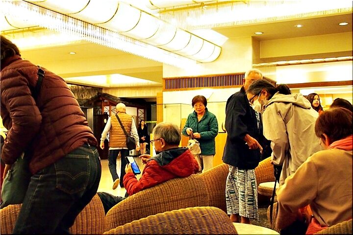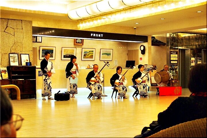 で、独りでノンビリとホテルにと戻って来ますと、ロビーでは、前夜同様に〝佐渡おけさ〟の公演の真っ最中。こんな状況の中、ロビーを横切ります勇気なんぞ微塵もありませんGONsanですから、ロビーの片隅で終わりますまで拝見です。