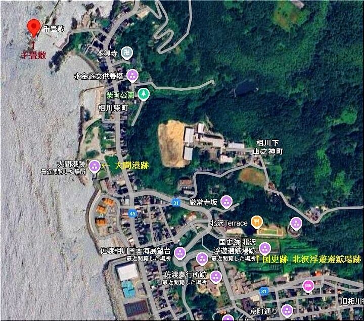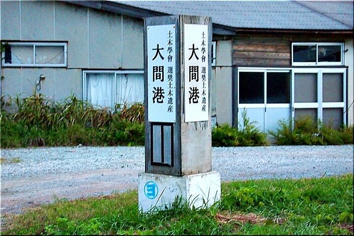大間は大きな澗、湊を意味する。廻船の入江で栄え、米問屋が軒を並べ、大間番所が置かれていた。番所付きの問屋八軒の筆頭橘屋は、良寛の母おのぶの生家である。明治中期には最新の工法で大間港が整備され、鉱山用港湾の町として発展した。佐渡鉱山の鉱石は、この港から搬出された。