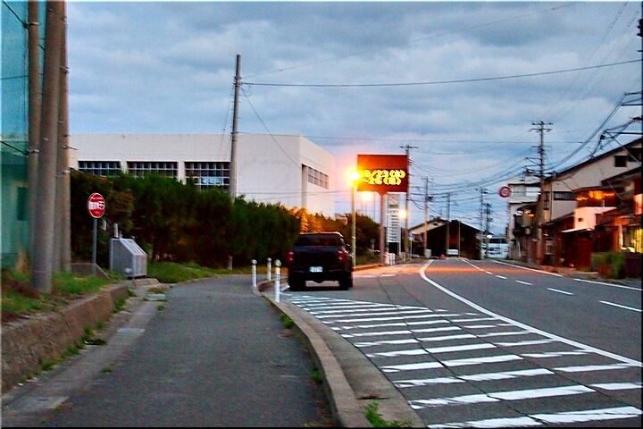 未だ薄暗い中、右折すれば〝北沢浮遊選鉱場〟に向かいますT字交差点へとヤッて来まして〝大間港跡〟も目前です。