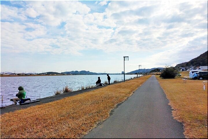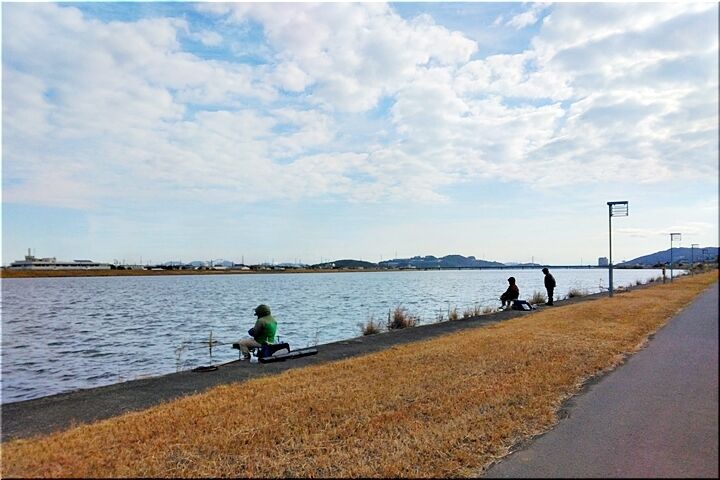 護岸では、珍しく釣り人のお姿が…何が連れますのか分かりませんけど、6人ばかりおられましたネ(^.-)☆