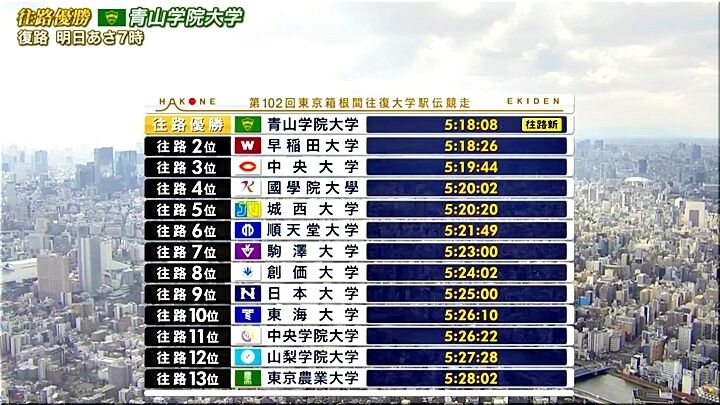 …と、こんな展開の往路で『青学大の往路V』は、大変素晴らしいものでありました(^.-)☆