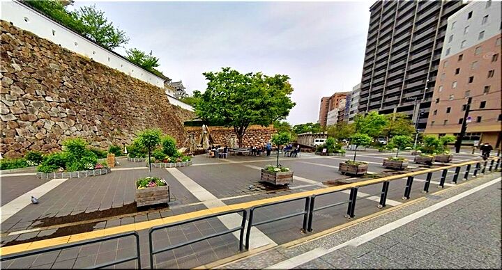 女性は通勤で毎日、駅を利用している。噴水広場(丸之内)は日課の散歩コースでもあり、天気のいい日は椅子に座って福山城を眺めるのが楽しみだったという。「バラの花壇と福山城がきれいに見えるお気に入りの場所だったのに、ゆっくり過ごしにくくなった」と残念がる。