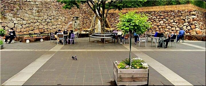 JR福山駅北口・噴水広場のテーブルと椅子…昨年5月にはありましたけど、昨年の年末近くに通りました時には、有りませんでしたネ(^-^)
