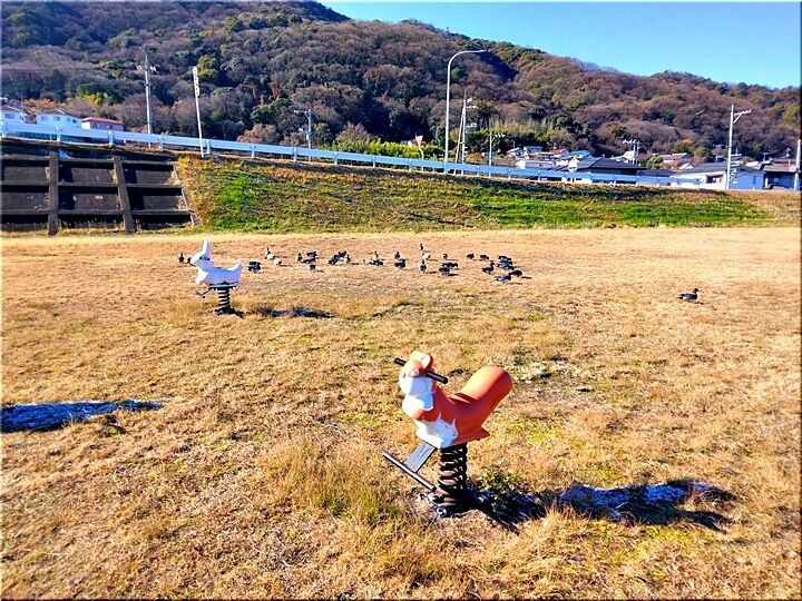 小水呑橋下を通過しますと、河川敷ではカモsan達の群れが日向ぼっこ中でありました。カモsan達が寒さ・冷たさに強いのか否か分かりませんけど、穏やかな日差しを浴びてリラックスしておりましたネ。
