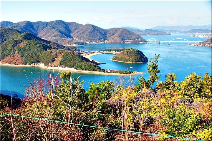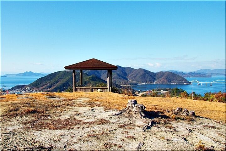 頂上に到着しまして眼下を眺望しますと、能登原海岸・内海大橋・矢ノ島・田島に囲まれました瀬戸内が、コバルトブルーで大変キレイでありました。コバルトグリーン…と言いました方が適切なのかも分かりませんけど(^-^)