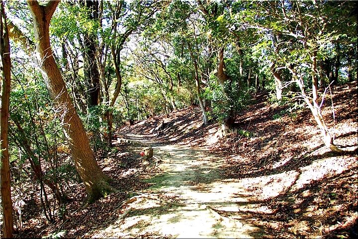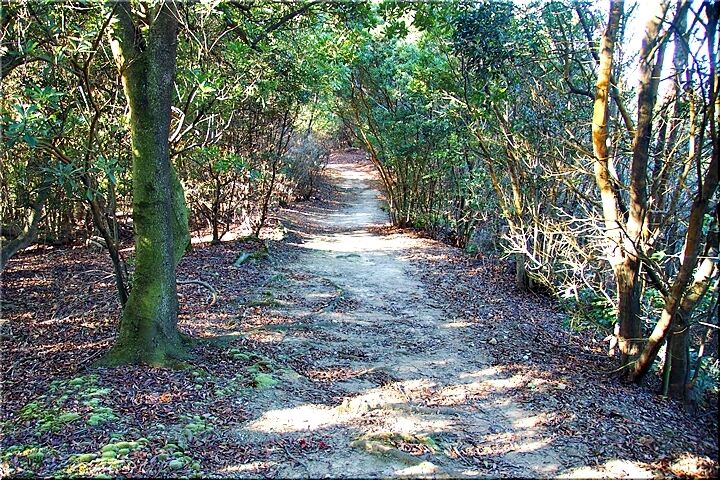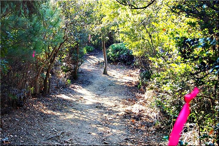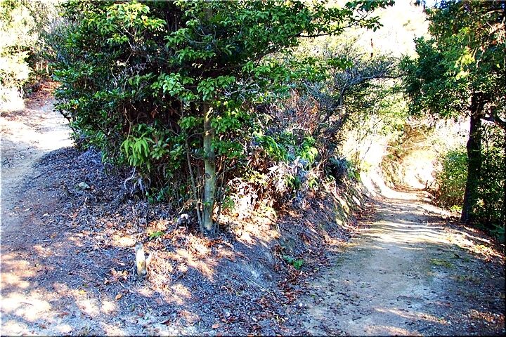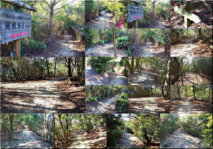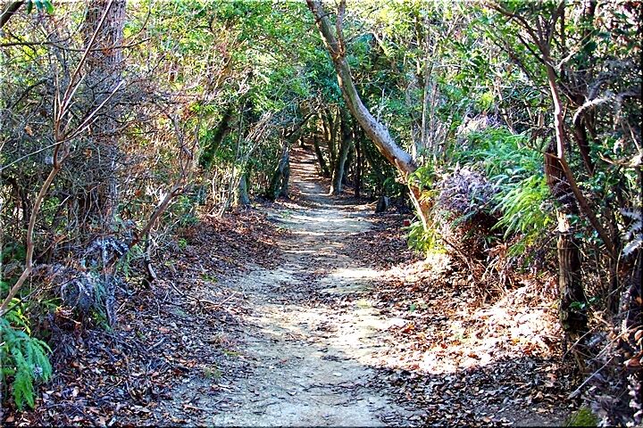 勾配のあります下り坂ですから、滑らないよう留意しながらの歩行となりましたけど、どぅにか〝尾根歩き遊歩道〟へと下りて来ました。ここからは、ほぼ平坦地を〝阿伏兎山西ルート南ルート合流点〟の展望台へと向かいます。