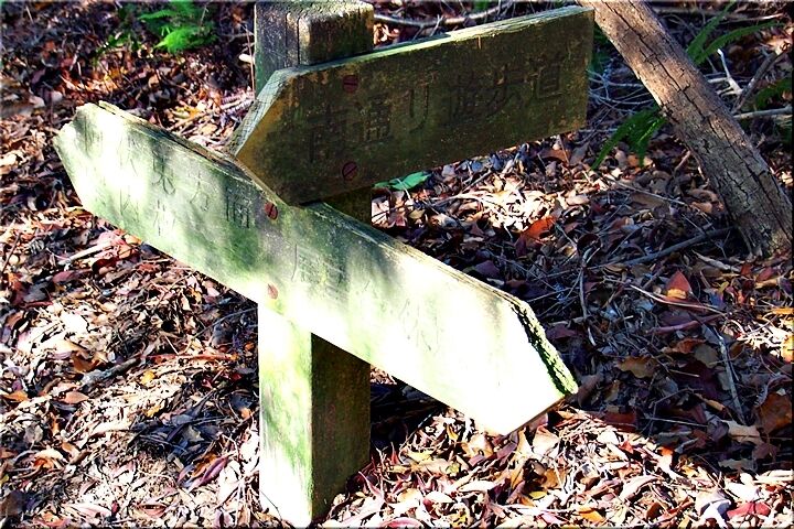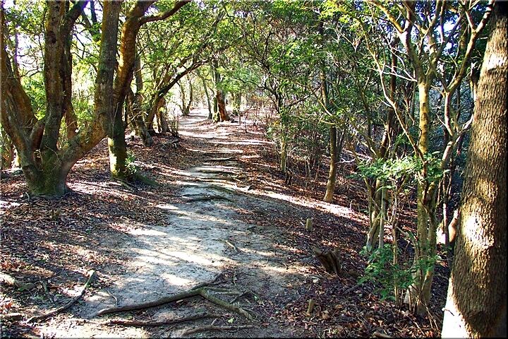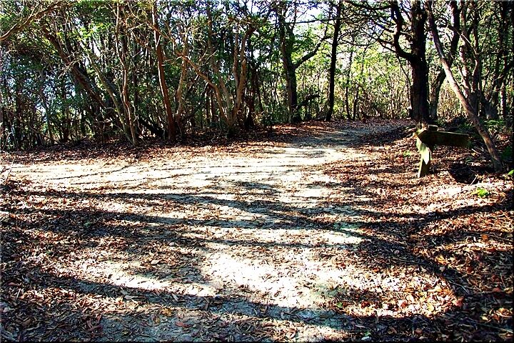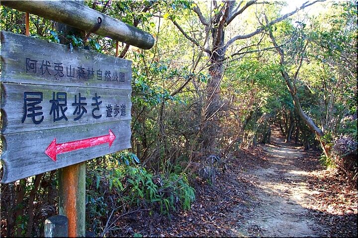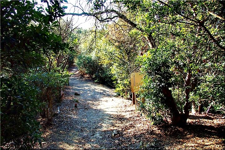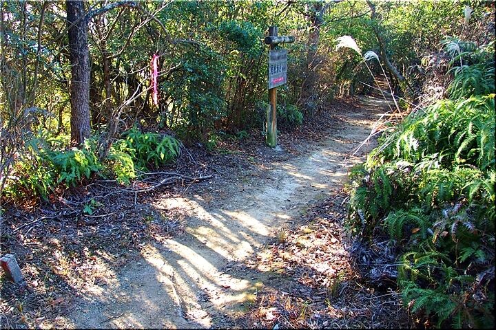 暫く進んで行きますと、三叉路にと出て来ました。ここには、こんな標識が…「←阿伏兎方面 ↓南通り遊歩道 展望台・休憩所→」