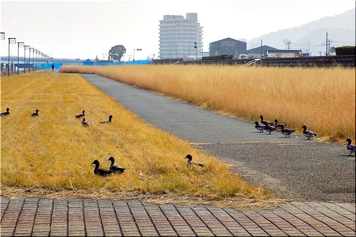 小水呑橋~芦田川大橋間の河川敷の、GONsanの進行方向にはカモsan一家がノンビリと過ごしておりました。