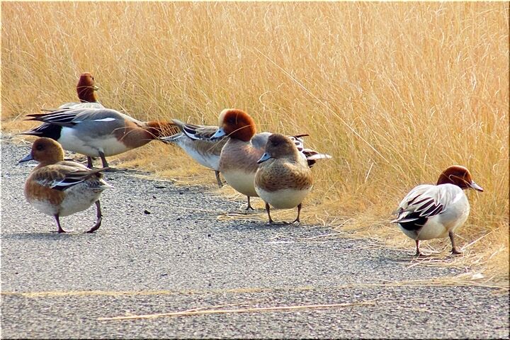 そして、いよいよ接近しますと、〝ピィー〟と合図の親ガモで、子ガモの皆さんは一斉に護岸方向へ…親ガモの合図に即座に従います可愛いぃ子ガモの皆さんで、実に微笑ましい光景でありました。