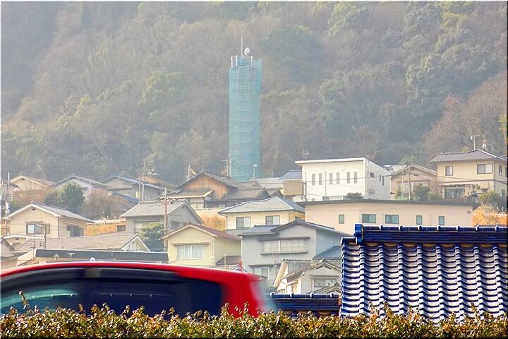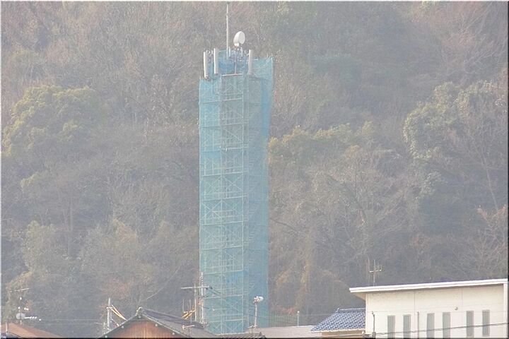 西方の山側に眼を向けますと、工事用シートに覆われた何か塔のような構築物が…〝んっ!?〟今まで有りませんでしたけど、何なんでしょうねぇ~