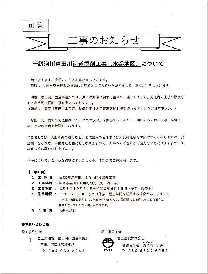 ジョギング・ウォーキング・バイク…等で芦田川河川敷をホームコースとしておられます方々には、もぅ半年ばかり辛抱ですネ。
