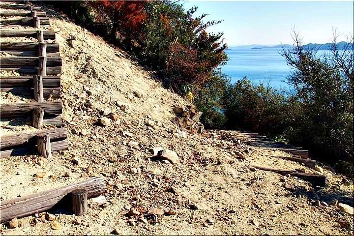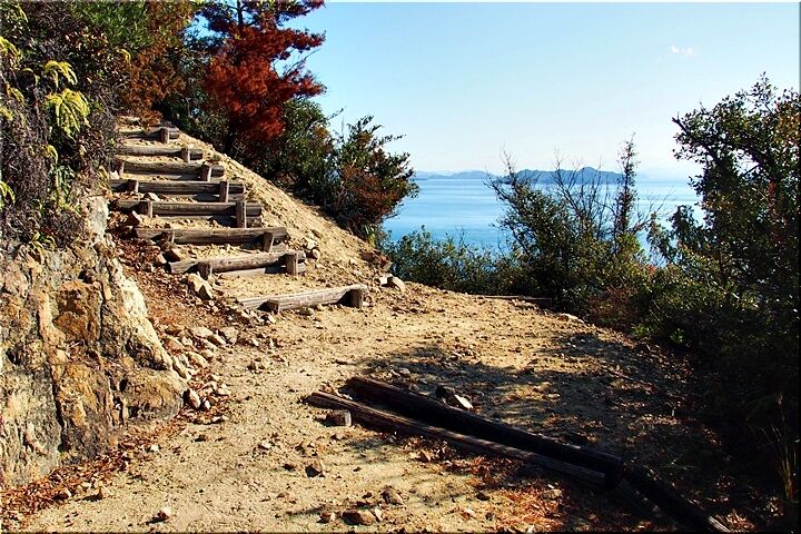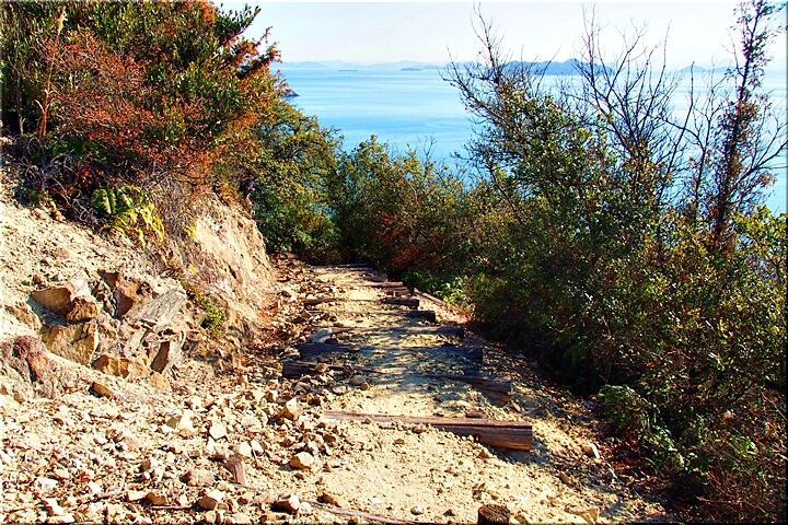 時たま穏やかな瀬戸内に眼を向けながら黙々と下りて行きますと、三叉路分岐点にと到着です。
