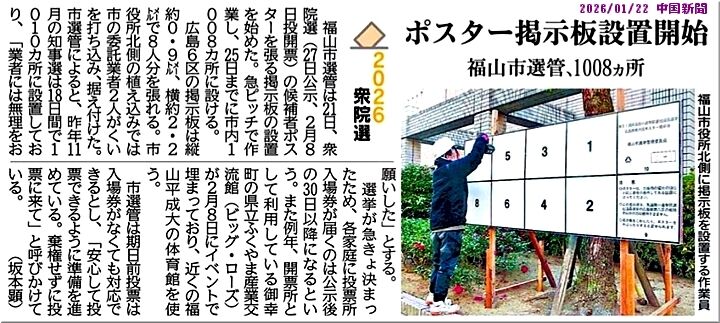 1/27(火)公示、2/8(日)投開票の、衆院選〝候補者ポスター〟掲示板設置が、昨日から始まりましたようですネ(^.-)☆