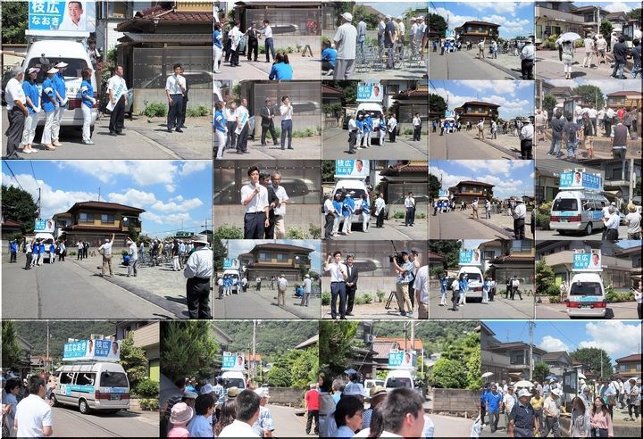 挿入の画像は、本日、水呑の演説会での一コマです。