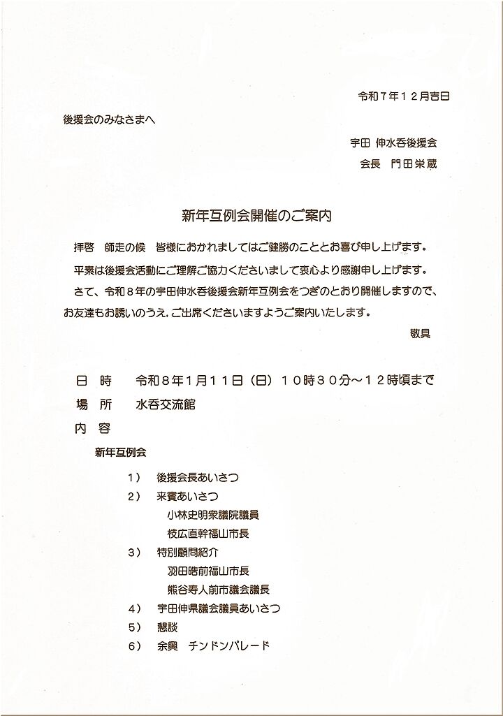 式典が終わりました段階で、枝広市長san、ご来賓の小林史明代議士san等はご退場。このお二人は、この後ユックリされる時間も無く、宇田県議の新年互礼会にご参加で、水呑町行きとなりますネ。