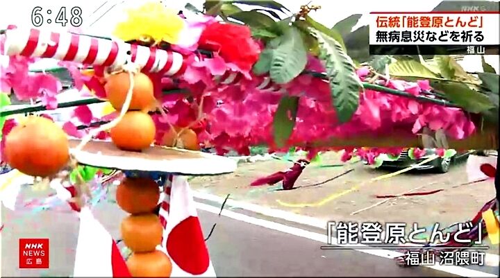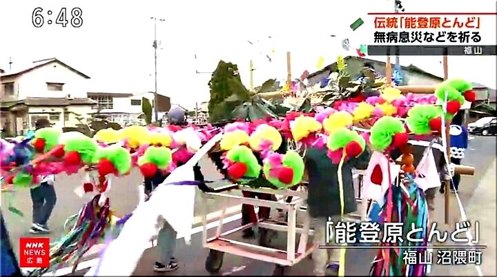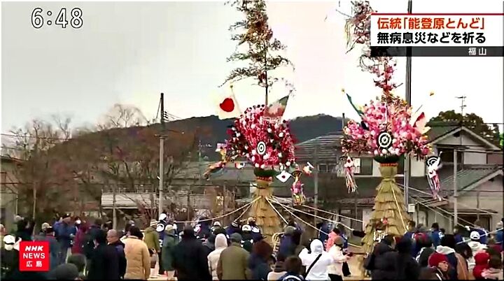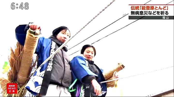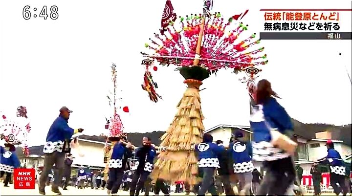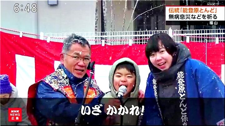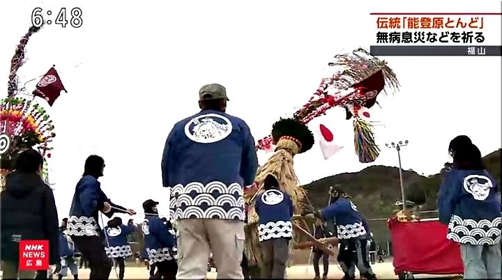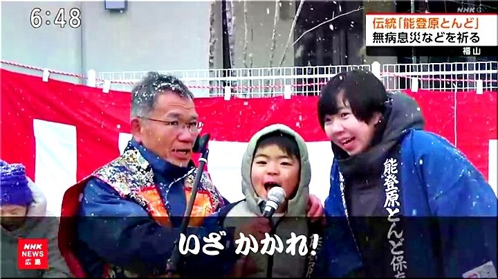 夕方のNHKニュースに眼を向けておりましたら、「能登原とんど」の会場にもお姿が(^.-)☆